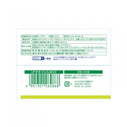 • 로리에 시아와세 부드러운타입 특히 많은날 낮 날개형 22.5cm (22개)