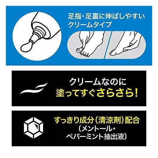 | 성분 | 성분분량 [재료] 물, Dimethicone, 폴리 메틸 실 세스 퀴 옥산, 에탄올, 실리카, 사슴 푸딩 산 네오 펜틸 글리콜, PEG- 11 메틸 에테르 Dimethicone, 파라핀 BG, 폴리 실리콘 -9, 스테 아릴 Dimethicone, 글리세 르 운 데실 Dimethicone, 세레신, 토로메타민, 글리세린, 정향 추출물, 히알루 론산 Na, 서양 박하 잎 추출물, 호박산, 구연산, 아 디프 산, 황산 Mg, 수산화 K, (메타 크릴 산 라 우릴 / 메타 크릴 산 Na) 크로스 폴리머, 이소 스테 아릴 글리세 르, 라우 레스 -6, 멘톨, 토코페롤, BHT, o- 시멘 -5- 올, 메틸 파라벤, 에틸 파라벤, 향료 용법 및 용량 [사용 방법 ]●적당량 (1cm 정도)을 손에 들고 몇 번에 나누어 발가락 사이, 발바닥, 발 뒤꿈치 등 다리 전체에 발라줍니다. (한쪽 기준 금액 : 2.5cm 정도)●피부에 얇게 펴 초과하지 않도록하십시오. 사용량이 적 으면 충분한 효과를 얻을 수없는 경우가 있습니다. ●사용 후 뚜껑을 제대로 닫아주십시오. ●사용 후에는 손을 씻는 것을 추천합니다. ●바른 후 피부가, 의복, 바닥, 신발 등에 터치하면 하얗게되는 경우가 있습니다. ●옷에 대해 하얗게 경우는 세제로 깨끗이 つまみ洗い을하십시오. 제형 형상 크림 |