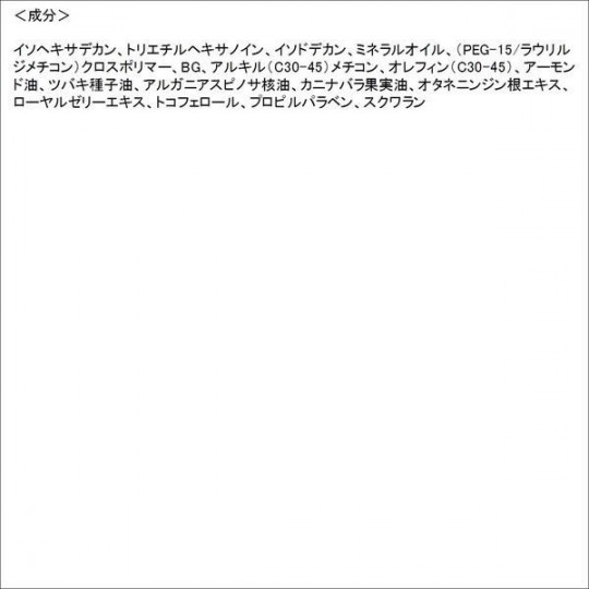 [재료] 이소 헥사 데칸, 토리, 이소도 데칸, 미네랄 오일 (PEG-15 / 라 우릴 지메) 크로스 폴리머, BG, 알킬 (C30-45) 치콘, 올레핀 (C30-45), 아몬드 오일, 동백 씨 오일, 아루 가니 아스 삐 노사 핵 오일, 카니 나바라 열매 오일, 인삼 뿌리 추출물, 로얄 젤리 추출물, 토코페롤, 프로필 파라벤, 스쿠알렌 용법 및 용량 [사용 방법]●빗 마른 상태의 속눈썹 뿌리부터 머리 끝까지 듬뿍 바른다 . ●귀하의 클렌징 료와 발라에서 미지근한 물로 씻어주세요. ●코튼 등으로 닦아도 OK입니다.