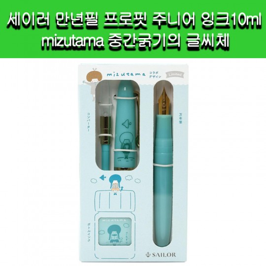 • 세이러 만년필세트 프로핏 주니어 잉크10ml mizutama 중간굵기의 글씨체(사에즈리)