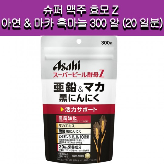 건강/건강식품 > 아사히 슈퍼 맥주 효모 Z 아연&마카 흑마늘 (300정) 20일분