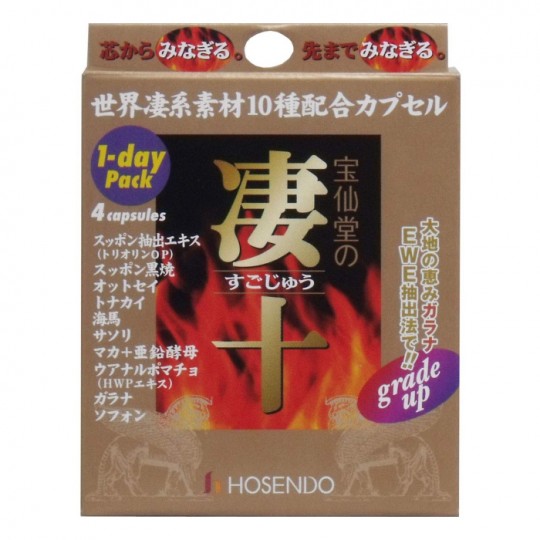 자라 추출물 (토리오린 OP) 순록 뿔 분말, 비타민 E 함유 식물성 기름, 물개 고기 분말, 우아나루뽀마쵸 분말 자라 타거나 분말, 해마 분말, 전갈 분말, 아연 함유 효모, 아카 가우 쿠루 아 말 과라나 추출물 분말, 마카에 키스 말, 젤라틴, 식물 레시틴 (대두 유래), 글리세린, 밀랍, 글리세린 지방산 에스테르, 단 철, 비타민 B1