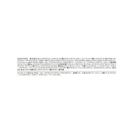 물,시크 로메 치콘 메시 케이 히 산 에틸 헥실 에탄올 이소 노난 산 이소 토리 데 시루 BG * PEG - 8,글리세린 메틸 트리 메 치콘,PEG-9 폴리 디메틸 실록시 에틸 지메,라 우릴 PEG-9 폴리 디메틸 실록시 에틸 지메 토코페롤 BHT,DPG,(PEG-15 / 라 우릴 지메) 크로스 폴리머 (아쿠 리 레츠 / 지메) 코 폴리머 올리브 지방산 에틸 구연산 Na,디 에틸 아미노 하이드 록시 벤조일 안식향산 헥실,스테아 루지 모니 우무 헥토 라이트 스테 아라 루 코니 우무 헥토 라이트 스테아르 산 이눌린,스테아로 일 글루타민산 2Na,활석,다이 병합 리놀레산 (휘토스테 르 / 이소 / 세틸 / 스테 아릴 / 베헤니루),트리에 톡시 카프리 릴 실란,팔미트 산 덱스트린 페닐 트리 메 치콘 미네랄 오일 치콘,염화 Na,수분 실리카 수산화 Al,메,산화 티탄,산화철