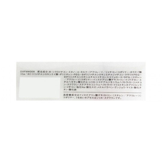 물,시크 로메 치콘 에탄올 탈크 (아쿠 리 레츠 / 지메) 코 폴리머 붕규산 (Ca / Al ),트리메틸 실록시 실리케이트 폴리에틸렌 PEG-9 폴리 디메틸 실록시 에틸 지메,라 우릴 PEG-9 폴리 디메틸 실록시 에틸 지메 토코페롤 DPG,(스티렌 / 아쿠 리 레츠) 코 폴리머 이소 스테아린 산 덱스트린 이소도 데칸,에틸 헥산 산세 틸,실리카 스테아 루지 모니 우무 헥토 라이트 지메 스쿠알렌 스테 아라 루 코니 우무 헥토 라이트 트리에 톡시 카프리 릴 실란,치콘,염화 Na,산화 주석,메,군 죠오,운모,산화 티탄,산화철
