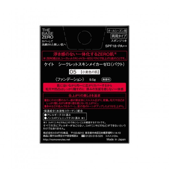 | 성분 | 성분 분량 <성분> 활석, 운모, 나일론 -12, 질화 붕소, 합성 플루오르 플 로고 파이 트 알루미나 (디 페닐 지메 / 비닐 페닐 지메 / 실 세스 퀴 옥산) 크로스 폴리머, 히드 록시 스테아린산 에틸, 메시 케이 히 산 에치, Dimethicone, 스쿠알렌, 이소 수소 첨가 피마자 기름, 토리, 이소 노난 산 이소 노닐, 바셀린, 지카 푸리 루 산 PG, 퍼플 루오로 옥틸 트리에 톡시 실란, 메 치콘, 수산화 Al, 수분 실리카 (Dimethicone / 메 치콘) 코 폴리머, 이소 스테 아릴 알코올, 수용성 콜라겐, 에틸 파라벤, 메틸 파라벤, 데 히도로 초산 Na, (+/-) 산화 티탄, 산화 아연, 산화철 용 및 용량 <사용 방법> ● 별매의 케이트 시크릿 스킨 메이커 제로 (팩트) 케이스에 넣고 사용하십시오. ○ 메이크업베이스로 피부를 정돈하고 나서 사용하십시오. ○ 스폰지에 적당량을 취해 얼굴 중심에서 바깥쪽으로 피부에 균일하게 펴주세요.