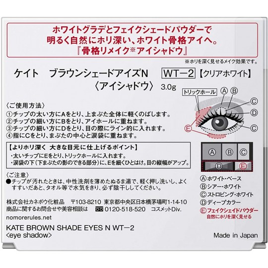 | 성분 | 성분 분량 [재료] 탈크, 마이카, 합성 플루오르 플 로고 파이 트, 이소 노난 산 이소 토리 데 시루, 사과산 지이소스테아리루, 디 페닐 실록시 페닐 토리메찌콘, 질화 붕소, 바셀린, 새 (카 프릴 산 / 카 프린 산) 글리세 릴, 지 스테아린 산 Al, 미리 스틴 산 Mg, 수소 첨가 뽀리 이소부 텐, Dimethicone, 스테아로 일 글루타민산 2Na, 메 치콘, 이소 소르 비탄, 수산화 Al, 미리 스틴 산 아연, 토코페롤, 토리 이소 스테아린 산 이소 프로필 티타늄, 라우로 일 아스파르트 산 Na, 염화 아연, 에틸 파라벤, 메틸 파라벤, 데 히도로 초산 Na (+) 알루미나, 군 죠오, 실리카, 산화 티탄, 산화철, 황산 Ba, 산화 주석, 붕규산 (Ca / Al) 용법 및 용량 [사용 방법] (1) 칩 굵은 사람에 화이트베이스를 취하고 눈두덩 전체에 가볍게 바릅니다. (2) 칩가는 분들에 쉬어 화이트를 잡고 아이 홀에 거듭합니다. (3) 칩가는 분들에게 깊은 색상을 잡고 눈 때 라인으로 넣습니다. (4) 손가락에 스토로빈구 화이트를 취하고 눈꺼풀의 중심과 눈물 주머니에 거듭합니다. [더 호리하게 큰 눈매로 완성하는 포인트] ● 굵은 칩에 가짜 세이 파우더를 취하고 트릭 홀에 넣습니다. ● 눈물 주머니 아래 (아래 눈꺼풀의 그림자가있는 부분)에 가짜 세이 파우더를 체중을 줄이는 ひとはけ. 눈의 세로 폭이 올라간다.