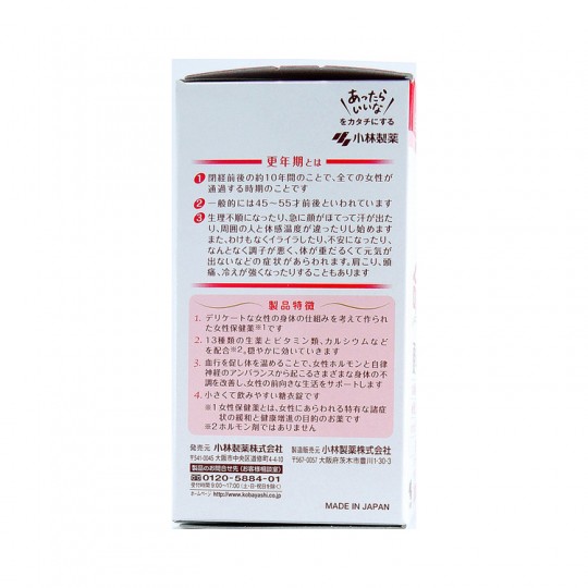 | 효능 | 갱년기 장애, 갱년기 신경증, 부인병, 현기증, 생리불순, 생리통, 어깨 결림, 냉한, 피부 건조, 이명(귀 울림), 심장의 두근거림, 빈혈, 변비, 여드름, 히스테리, 대하, 산후 전 산후 후, 아랫배 요통, 혈압 이상, 두통 |