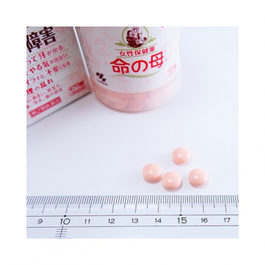 | 성분 | 1일량(12정)중 대황 말:175mg, 카노코 소우 말:207mg, 계피 말:170mg, 샌드 큐우 말:100mg, 소우쥬츠 말:100mg, 작약 말:300mg, 북료우 말:175mg, 토우 키 말:300mg, 코우 부시 말:50mg, 오수유:40mg, 반하:75mg당근:40mg, 코우 카마:50mg, 염산 티아민:5mg, 리보플라빈:1mg, 염산 피리독신:0.5mg, 시아노 코발라민:1μg, 판토텐산 칼슘:5mg, 엽산:0.5mg, 아미노 에틸 설폰산(아미노 에틸 설폰산(타우린):90mg, 호박산 dl-알파-토코페롤(비타민 E):5mg, 파루칼크:10mg, 비오틴:1μg, 콩 가루 레시틴:10mg