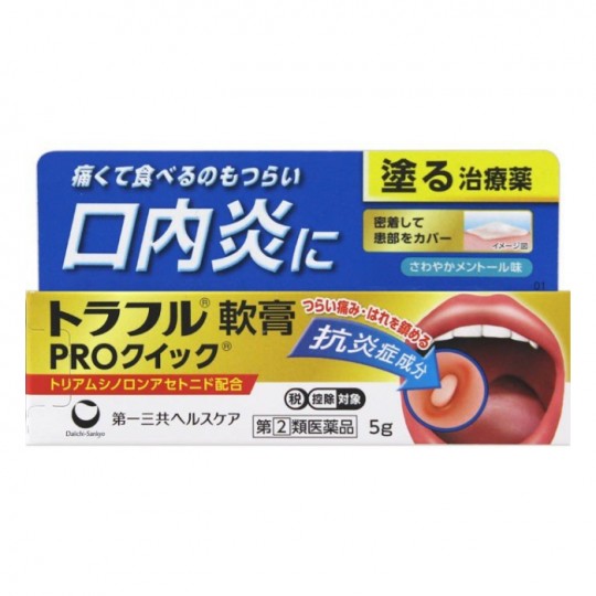 | 성분 | 성분 분량 이 약은 흰색 ~ 엷은 갈색의 연고에서 100g 중 다음의 성분을 함유하고 있습니다. 트리아 벌레 노 론 아세 나이드 ··0.1g (환부에 직접 작용하여 염증을 가라 앉히고 염증을 개선합니다.) 첨가물 : 글리세린, 겔화 탄화수소, 폴리 아크릴산 Na, 히뿌로 메로스 경화 오일, 카루 메로스 Na, l- 멘톨, 사카린 Na 용법 및 용량 <용법 용량> 1 하루 1 ~ 회 적당량을 환부에 도포하여주십시오. <사용 방법> 1. 이 약을 사용하기 전에 손을 씻고, 입을 헹구어 청소하십시오. 2. 이 약을 환부에 닫집 붙인다 같이 신청하세요. 3. 도포 한 후, 가능한 부위를 만지지 않도록하십시오. 용법 용량 고려 1. 용법 용량을 준수하십시오. 2. 소아에게 사용하는 경우에는 보호자의지도 감독하에 사용시켜주세요. 3. 이 약은 구강 용으로 만 사용하고 구강 용 이외에는 사용하지 마십시오. 4. 통증이 가라 후 사용을 종료하십시오. 5. 도포 후 잠시 음식을 피한다. 6. 의치 접착 등 치료 이외의 목적으로 사용하지 마십시오. 제형 형상 연고
