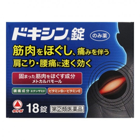 | | 내용량 | 18정 | | 사이즈 | 높이55mm x 폭72mm x 깊이31mm | | 성분 | 성분 분량 6 정 (15 세 이상 1 일 복용량) 중 메토 카바 몰 ... 1500mg (신경 반사를 억제 근육의 비정상적인 긴장과 경직을 제외하고 통증을 완화합니다.) 에텐자미도 ... 900mg (비 피린 계 진통제 성분으로 통증을 가라 앉히고 있습니다.) 무수 카페 인 ... 90mg (통증을 억제 성분의 작용을 도와줍니다.) 토코페롤 아세테이트 에스테르 (비타민 E 초산 에스테르) ... 90mg (말초 혈액의 흐름을 좋게하고 근육 이상 긴장과 결림을 개선하는 성분의 작용을 도와줍니다.) 벤조일 티아민 (비타민 B1 유도체) ... 24mg (통증을 억제 성분의 작용을 도와줍니다.) 첨가 물건 : 카루 메로스 Ca, 구연산 나트륨 수화물, 스테아린산 Mg, 히드 록시 프로필 셀룰로오스, 실리카, 메타 규산 알 바겐 산 Mg p> 용법 및 용량 <용법 용량> 다음의 양을 가급적 공복을 피하고 물 또는 뜨거운 물을 물지 않고 복용한다. 15 세 이상 ... 1 회 용량 2 정, 1 일 복용 횟수 3 회 12 세 ~ 14 세 ... 1 회 용량 1 정, 1 일 복용 횟수 3 회 12 세 미만 ... 복용하지 않는 것이 용법 용량 고려 (1) 어린이에게 복용시킬 경우에는 보호자의지도 감독하에 복용시킬 것. (2) 용법 용량을 준수한다. (3) 정제 추출 방법 오른쪽 그림과 같이 알약이 들어있는 PTP 시트의 볼록한 부분을 손가락으로 강하게 눌러 뒷면의 알루미늄 호일을 깨고 꺼내 복용한다. (잘못 그대로 삼켜거나하면 식도 점막에 꽂히는 등 뜻밖의 사고로 이어집니다.) p> 제형 형상 소 정 p> | | 효능 | 효능 효과 ● 근육의 비정상적인 긴장,경련,통증을 동반 다음의 여러 질환 요통, 어깨 결림, 근육통, 마흔 허리, 어깨의 통증, 신경통, 자고 틀림, 염좌, 타박상, 운동 후 근육 통증, 관절통