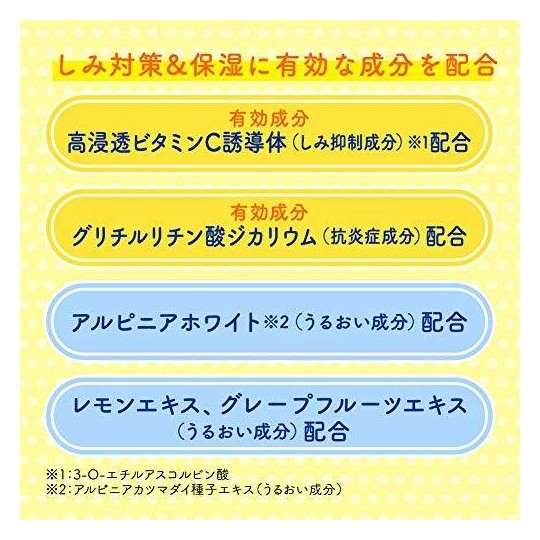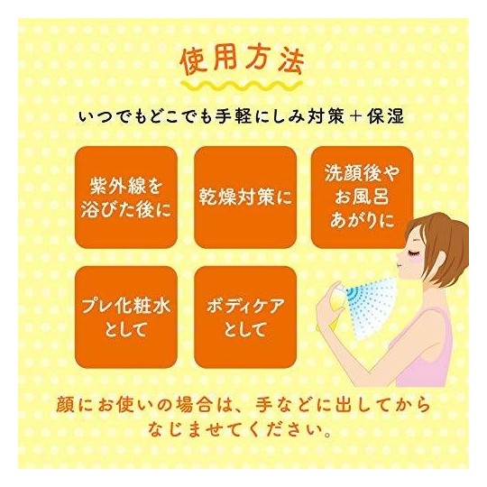 <유효 성분> 3-O- 에틸 아스 코르 빈산 (높은 침투 비타민 C 유도체), 루리 산 지 카리 우무 < BR> <기타 성분> 아스 코르 빈산 (비타민 C), 자몽 추출물, 레몬 추출물, 멘톨, 아루삐니아 돈까스 참돔 종자 추출물 (아루삐니아 화이트), BG, 에탄올, 무수 에탄올, 글리세린, 질소, POE,POP 데실 테트라 호랑이 데실 에테르, 시클로 헥산 디카 르 복실 산 비스 톡시 글리콜, 파라벤, 구연산 나트륨 수화물, 무수 구연산, 에데 토 산염, 향료 용법 및 용량 <사용 방법> 얼굴에 사용할 때는 세안 후 손바닥 또는 화장 솜에 적당량을 취해 피부에 친숙하도록 부드럽게 퍼팅 흡수시켜주십시오.  제형 형상 미스트