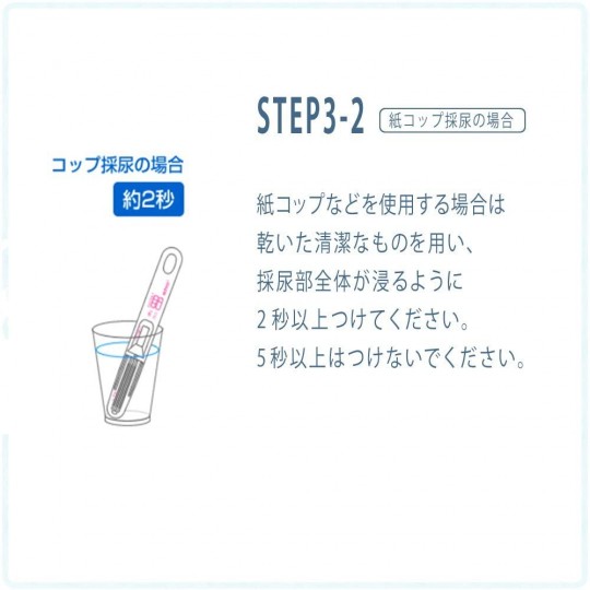 ※ 종이컵 등을 사용하는 경우는 깨끗한 마른 것을 이용, 채뇨 부 전체가 적시 게 2 초 이상 달아주세요.