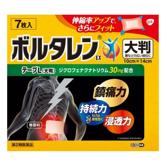 | 성분 | 성분 분량 (반창고 몸을 100g 중 디클로페낙 나트륨 1g) 1 장 (10cm x 14cm) 당 반창고 체 량 3.0g 디클로페낙 나트륨 30mg 함유 첨가물 : 지환 족 포화 탄화수소 수지, 스티렌 이소프렌 스티렌 블록 공중 합체, 유동 파라핀, 폴리 이소 부틸 렌, N- 메틸 -2- 피 롤리 돈, 디 부틸 히드 록시 톨루엔, l- 멘톨, 기타 2 성분 용법 및 용량 [용법,용량] 플라스틱 필름을 떼어 내고 1 일 1 회 1 매 를 환부에 붙여주세요. 그러나 1 회 1 매를 초과하여 사용하지 마십시오. 또한 본 성분을 포함한 다른 외용제를 함께 사용하지 마십시오. [용법 용량에 관한주의] (1) 정해진 용법 용량을 준수하십시오. (2) 당 24 시간을 초과하여 붙여 계속하지 마십시오. 또한 동일한 환부에 붙여 바꾸는 경우는 그 부착 부에 발진 발적, 가려움, 염증 등의 증상이 발생하지 않는 것을 확인 후 사용하십시오. (3)이 약은 통증과 부은 등의 원인이되어 질병을 치료하는 것이 아니라 통증과 부은 등의 증상만을 치료하는 약이므로 증상이있는 경우에만 사용 하십시오. (4) 땀을 흘리거나, 환부가 젖어있을 때는 잘 닦아 낸 후 사용하십시오. (5) 피부가 약한 사람은 사용 전에 팔 안쪽의 피부가 약한 부분에 1 ~ 2cm 각도의 작은 조각을 기준으로 반나절 이상 붙여, 발진 발적, 가려움, 염증 등의 증상이 발생 없는 것을 확인한 후 사용하십시오. (6) 사용 부위에 다른 외용제를 함께 사용하지 마십시오. 제형 형상 고약 제